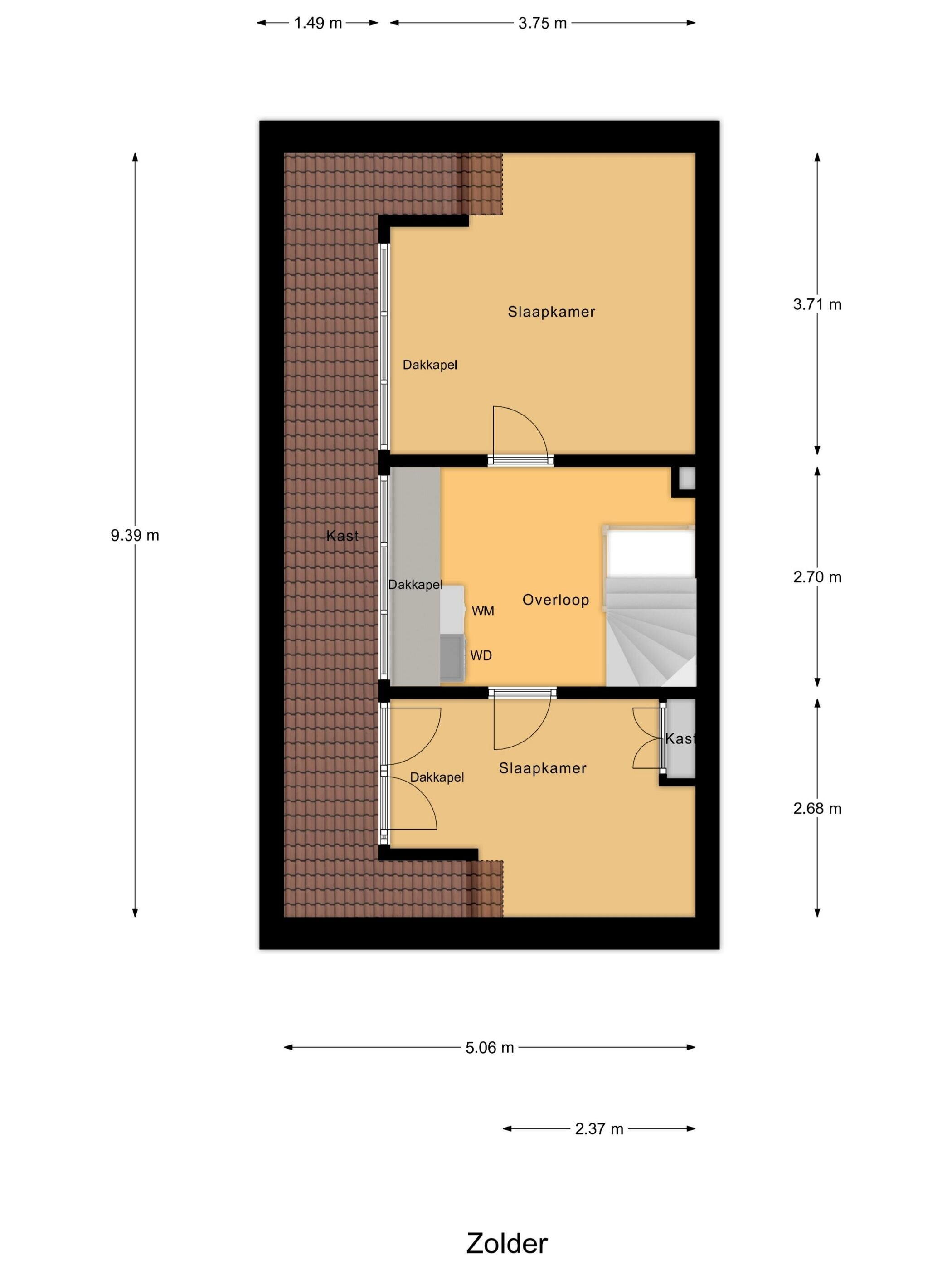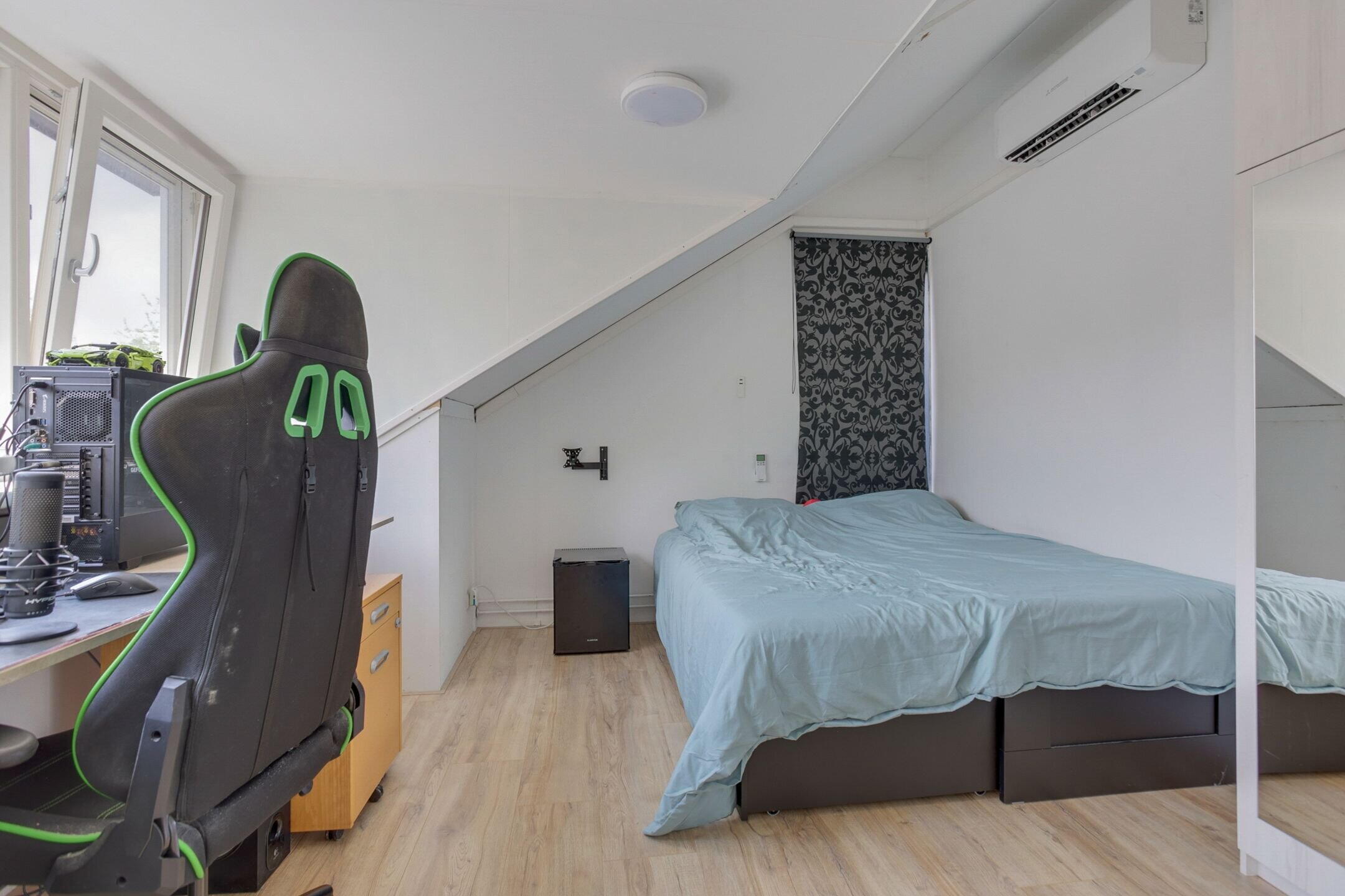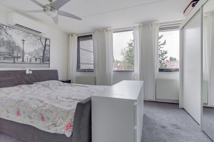 Via een vaste trap bereikt u de tweede verdieping. Hier bevinden zich nog eens twee ruime slaapkamers. De verdieping is voorzien van een dakkapel over bijna de gehele lengte (8 meter) voorzien van horren en rolluiken. Daarnaast is er een grote wasruimte met plek voor wasmachine en droger, veel kastruimte en een overloop met cv-ketel en extra bergruimte achter de knieschotten. 1 slaapkamer is voorzien van airco.