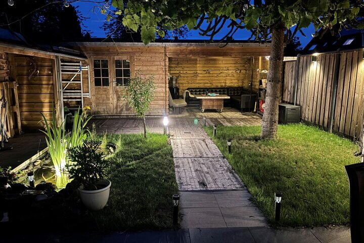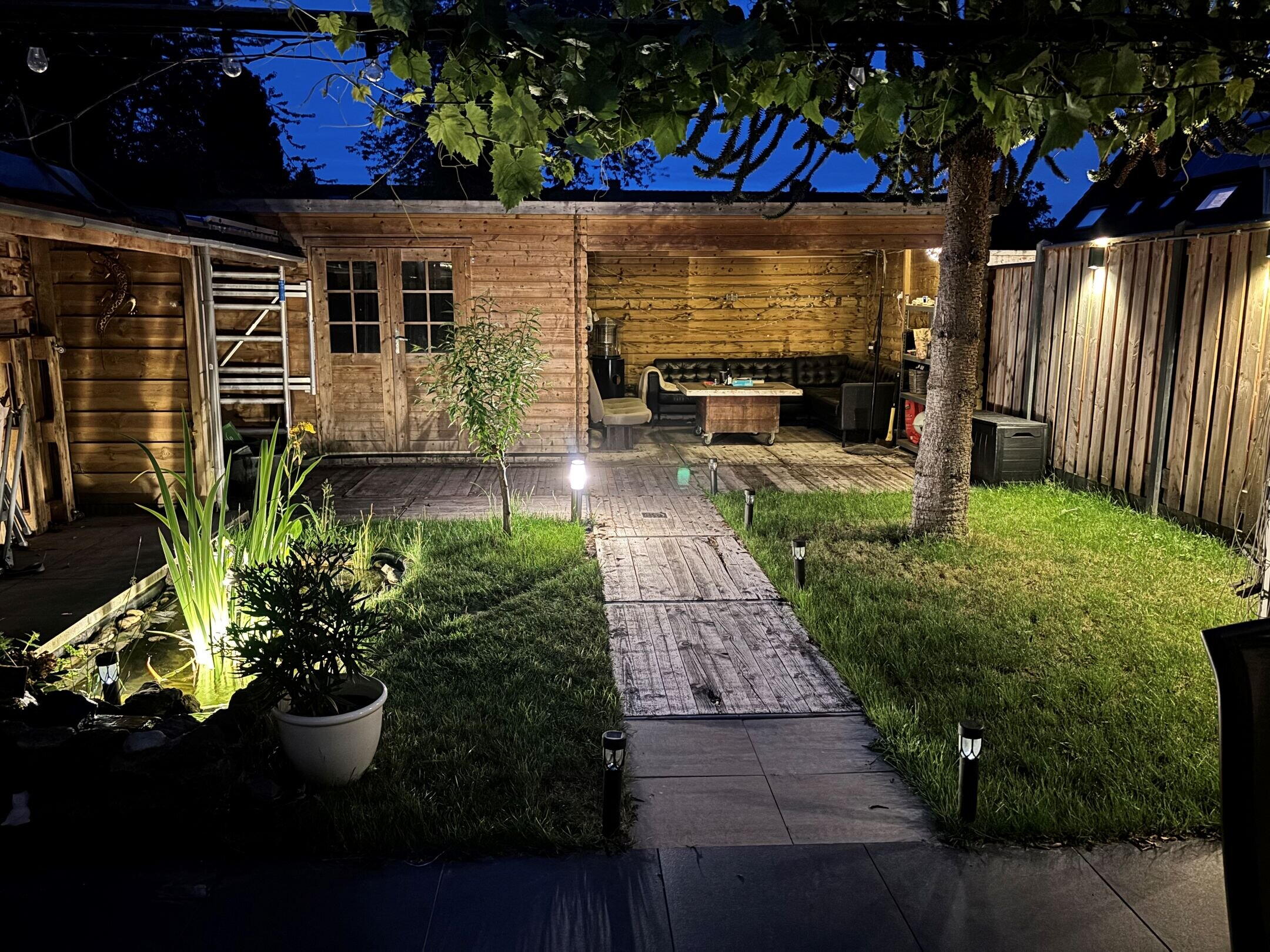 - Zonnige tuin op het zuidwesten met overkapping en tafelhaard